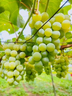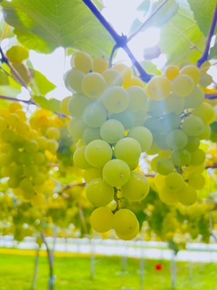 香りが強い白ぶどう。 黄色くなって完熟しました。